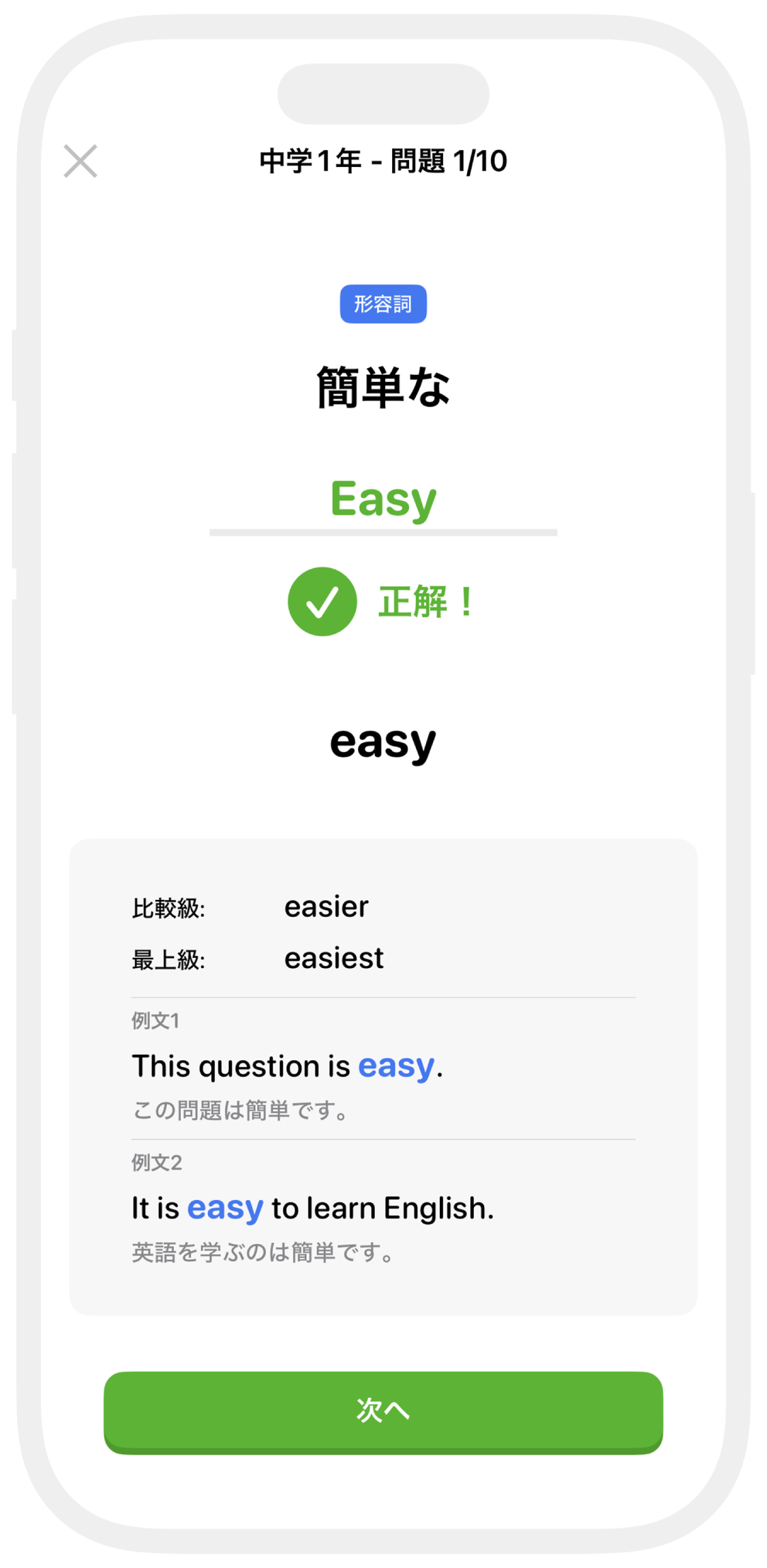 レベルに合わせて出題される10問を、
