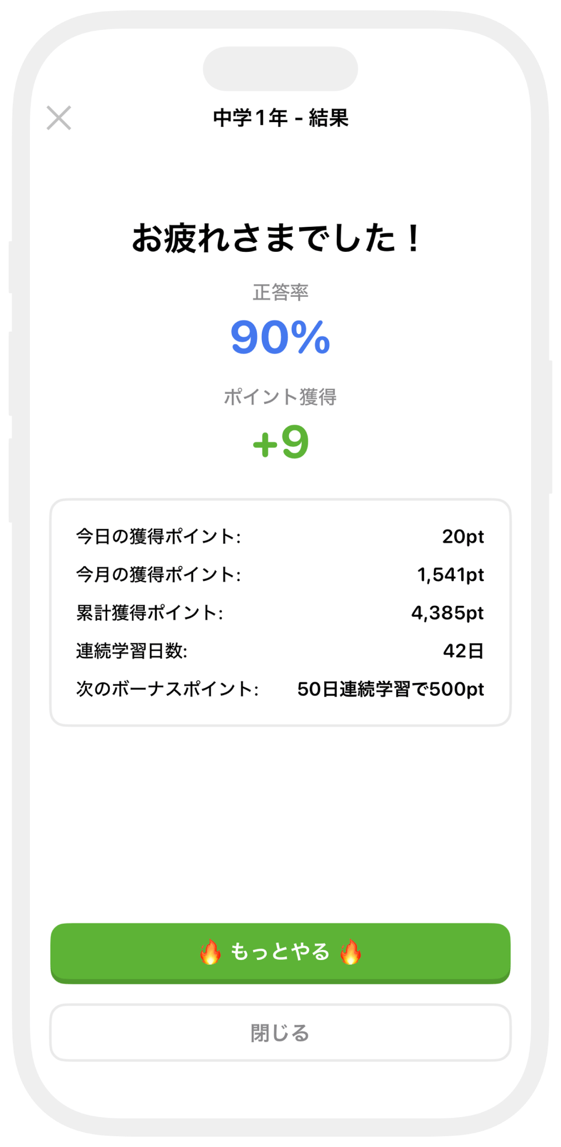 正解数、連続学習でポイントを獲得。